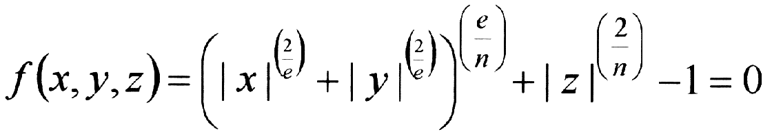 The superellipsoid object creates a shape known as a superquadric ellipsoid object. It is an extension of the quadric ellipsoid. It can be used to create boxes and cylinders with round edges and other interesting shapes. Mathematically it is given by the equation: