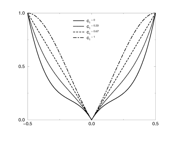 This straight slope can be made to curve by adjusting the two control values. The control values adjust the slope at the top and bottom of the curve. A control values of 0 at both ends will give a linear slope, as shown above, yielding a hard edge. A control value of 1 at both ends will give an "s" shaped curve, resulting in a softer, more rounded edge.